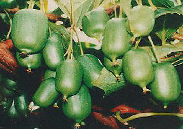 Женский десертный сорт актинидии, ранних сроков созревания ягод. Лиана средних размеров с вьющимися, неопушенными побегами. Листовые пластинки крупномеров актинидии Королева сада сердцевидные, голые, мягкие желтовато-зеленого цвета. Урожаи крупных (до 3,4 г) оливково-зеленых кисло-сладких, пахнущих ананасом ягод можно собирать, начиная с середины сентября. В среднем, с одного куста получают около 0,8 кг плодов. Сорт устойчив к разного рода инфекционным заболеваниям. Морозами повреждается в незначительной степени. Для ежегодного плодоношения необходимо соседство мужских растений.