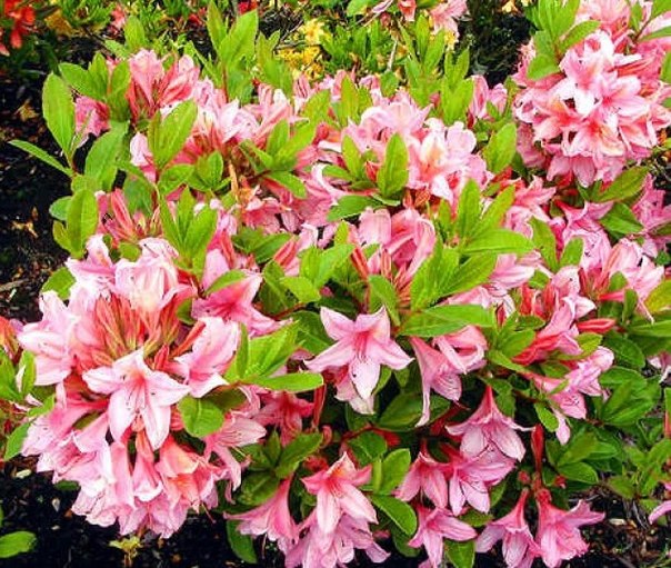 Рододендрон желтый Суар де Пари - кустарник с несимметричной формой и пряморастущими побегами. Со временем округляется. Цветет обильно в конце мая и в первой декаде июня. В высоту достигает до 1,2 метра. Ширина куста до 1,5 метров. Цветы светло-розовые, с насыщенным и приятным запахом. Предпочитает кислые почвы, богатые перегноем, дренированные. Предпочитает солнечные места или полутень. Морозостойкость до -24С.