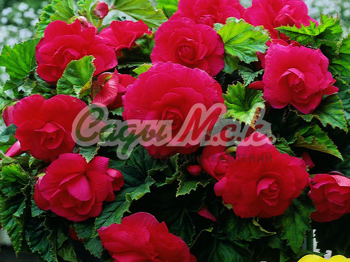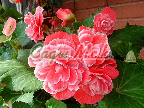 Бегония с крупными белыми махровыми цветками. Особенность этой серии - цветки гвоздиковидные, с сильно изрезанными краями лепестков. Листья нежные, узорчатые, прекрасно сочетаются с пышными цветами.