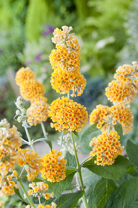 Быстрорастущий кустарник свободной формы, вырастает высоты 2 м. Побеги слегка дуговидные. Листья зеленые, узкие. Цветки желто-оранжевые, собраны в достаточно короткие (20 см дл.) соцветия, цветут с июня по октябрь. Хорошо растет в теплом, защищенном, солнечном месте с плодородной, достаточно влажной почвой. Кустарник нуждается в укрытии на зиму и обрезке весной