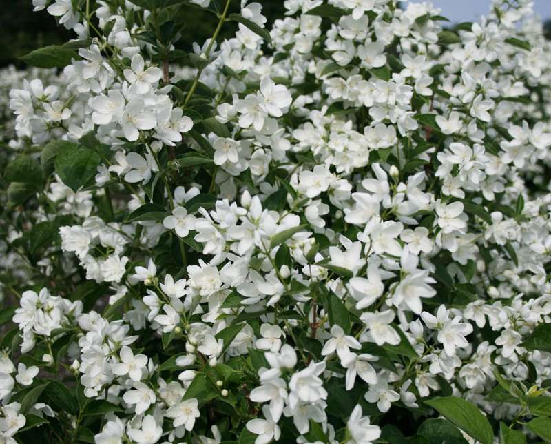 Саженцы чубушника Moth Ballet прекрасны, когда достигают «зрелости». Взрослые кустарники довольно компактные и имеют овальную форму, высота его до 4 м. Свое название данный сорт получил из-за своих цветков. Цветет он обильно, имеет бархатные, крупные цветы (диаметр до 4 см.), лепестки которых изогнуты. Создается впечатление, что цветки держаться над самим растением, что напоминает белых мотыльков.Саженцы можно посадить на солнечную сторону. КрупномерMoth Ballet приживется в любом виде почвы. Среди садовых растений, данный вид очень популярен. Подойдет для групповых и одиночных посадок, создания изгородей.