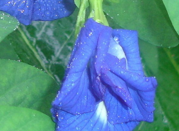 Clitoria Ternatea Blue Sails выращивается как среднерослая лиана длиной 2-4 метра. Листья большие, зеленые. Цветки огромные, махровые, фиолетово-синие с белым основанием и темно-синими жилками. Цветет сорт летом.