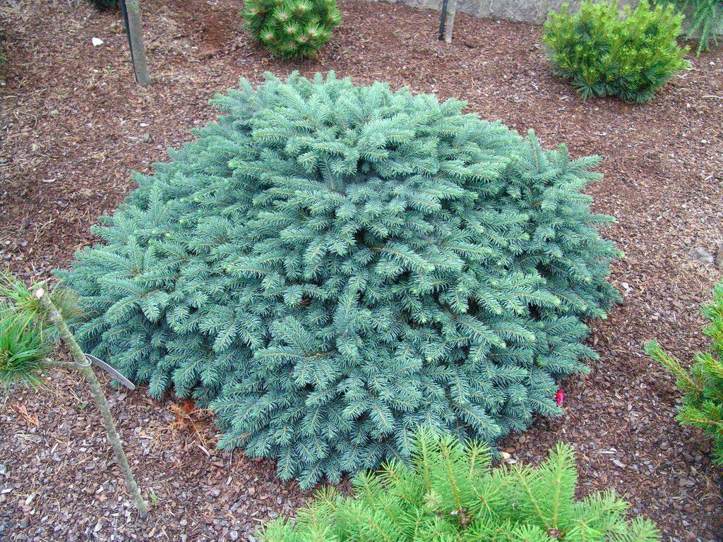 Ель колючая Waldbrunn - медленно растущий сорт. Крона округлая, гнездовидная рыхлая, к старости становится плотным широким конусом. На собственных корнях дольше сохраняет сферическую крону, привитые растения растут быстрее, приобретая более коническую форму. Высота взрослого растения – 0,8 м, диаметр – 1 м. В 10 лет высота 0,5 м при диаметре кроны 0,8 м. Хвоя серебристо-сизая, до 1,5 см, молодая хвоя ярко-голубого цвета. Иголки толстые, мягкие, на коротких, плотно расположенных побегах. Ель растет очень медленно. Зимостойка. Предпочитает солнечное местоположение, но неплохо развивается и в полутени.