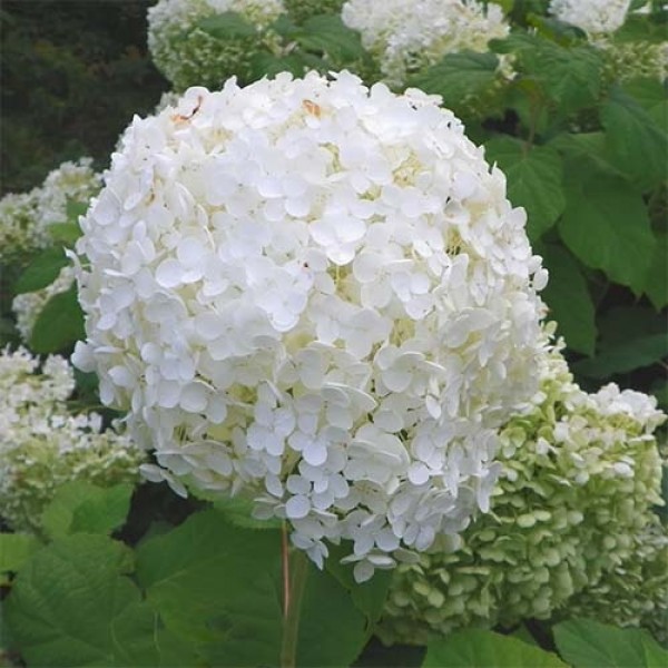 Саженцы гортензии древовидной Grandiflora можно выращивать как пышный кустарник, так и маленькое деревце. При, практически, 2-м росте, куст имеет раскидистую крону в 3 метра диаметром. Благодаря своим размерам, часто используется в качестве живой, цветущей изгороди. Цветет Grandiflora с июля по сентябрь, цветы ее бесплодны, завязь образуется на прошлогодних побегах. Поэтому крайне важно их сохранить, для чего крупномер Grandiflora первые несколько лет на зиму укрывают.