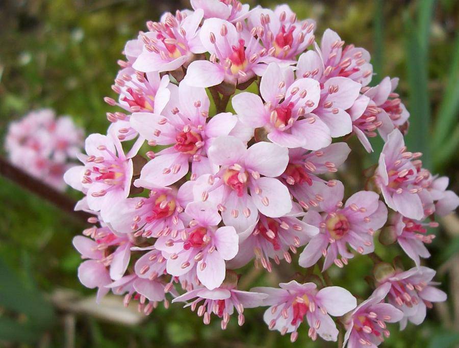 Особенности щитовидной дармеры: прекрасно себя чувствует на солнечных полянах и в полутени; цветение данного вида начинается в весенний период, бутоны окрашены в нежно-розовый цвет.
