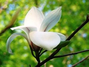 Магнолия Amabilis - 30-летний куст, вырастает высотой 4 м и имеет компактную крону 3х3, 5 м. Эта форма растет медленно, зацветает одновременно с появлением листьев (май). Цветки белые, бокаловидные, 7-8 см в диаметре. Лепестков 6, они белого цвета, снаружи у основания с маленьким пурпурным пятном. Чашелистиков 3, они маленькие. Цветы душистые, напоминающие цветок магнолии обнаженной, в конце цветения приобретают кремовые цвета. Пыльники желтые, тычинки нити — пурпурные.