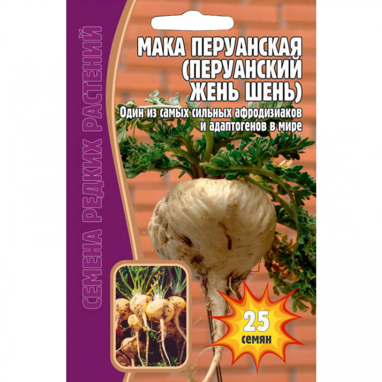 Мака многолетнее растение, но выращивается как однолетнее, высотой до 20 см. Клубни собирают через 6-9 месяцев после посадки. Клубень диаметром до 8 см, с белой или желтоватой ароматной мякотью, снаружи может быть желтый, розовый или красноватый. Мака считается наилучшим природным средством, наделяющим организм энергией, усиливающим защитные функции организма, памяти и концентрации, усиливающим физические и сексуальные силы, предотвращает гормональное старение. Главное ее достоинство в том, что это единственное природное средство, которое действует на всю гормональную систему, но не просто временно стимулирует, а питает железы внутренней секреции и поддерживает гормональную балансировку организма. Она очень полезна, безопасна, и не вызывает аллергий. Сушёные клубни могут храниться долгие годы.
