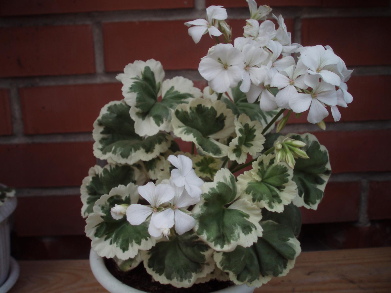 Пеларгония Mont Blanc - многолетний кустарник. Идеально подходит для выращивания в горшках. Листья округло-сердцевидной формы, темно-зеленые с белой каймой. Цветки чисто-белые, простые. Цветоносы средней высоты, чаще всего содержат по 1 цветку.