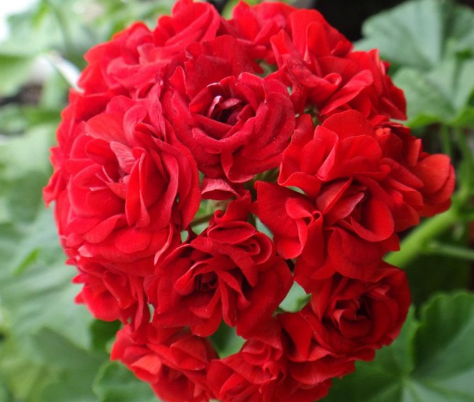 Пеларгония Scarlef - очень красивое декоративное растение. Листья у растения темно-зеленые, слегка зубчатые. Цветки крупные, яркие, напоминают бутоны роз. Окрас лепестков насыщенно-красный, изредка можно увидеть розовый оттенок. Соцветия очень плотные и крупные, зонтиковидной формы.