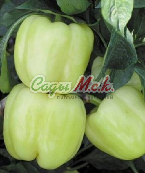 Ранний, среднерослый сладкий перец для открытого грунта (южные регионы) и теплиц. Первые плоды можно убирать через 95-108 дней после всходов. Растение мощное, прочное, высотой до 100 см, усыпано одинаковыми удлиненно-конусовидными глянцевыми перчиками, длиной 15-25 см и диаметром 5 см. Масса 200 г. Стенки сочные и сладкие, не очень толстые, но нежнейшей консистенции. Незрелые плоды светло-зеленые, при созревании становятся ярко-желтыми. Один из лучших салатных сортов. Устойчив к основным заболеваниям перца. Посев на рассаду - в конце февраля. Пикировка - в фазе 1-2 настоящих листьев. Высадка в теплицу - в конце мая. После высадки у растений удаляют боковые побеги и листья до первой развилки и подвязывают к опоре. Схема посадки 40x60 см.