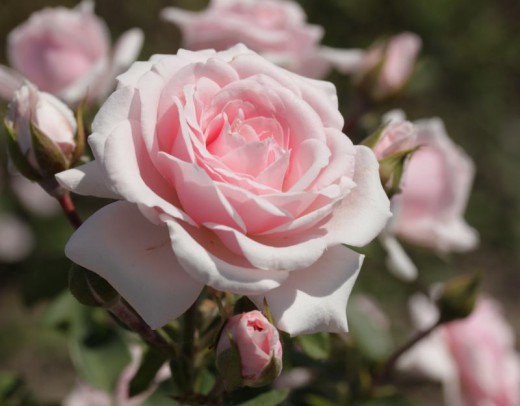 Diadem - хорошая невысокая роза, очень обильноцветущая, устойчивая к влажной погоде. Размер цветка 6-7 см. Цветки красивого нежно-розового цвета, выгорают до почти белых. Оборотная сторона лепестков всегда темнее, и цветки густомахровые и чашевидные, так что контраст между светлым «верхом» и темным «низом» хорошо виден, и придает дополнительную привлекательность сорту. Цветки появляются в небольших кистях, обычно по 3-5 шт, поникающих под собственным весом. Высота растения 120-150 см. Куст ветвистый, прямостоячий, компактный, с темной, устойчивой к болезням листвой. Очень зимостоек.