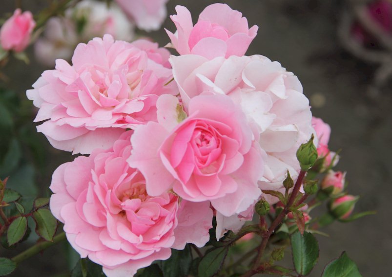 Bonica - цветки бледно-розовые, раскрываются из ярко-розовых бутонов и быстро выгорают до почти белых, особенно в жару. У них волнистые лепестки и слегка чашевидная форма. Цветки обычно появляются по 5-15 шт в кистях. Хотя побеги и короткие, цветки хороши для срезки, и долго стоят в воде. Цветение очень длительное и впечатляющее. Сорт формирует густой, округлой формы куст, который может достигать 1, 5 м в высоту. Листва красивая, темно-зеленая, блестящая.