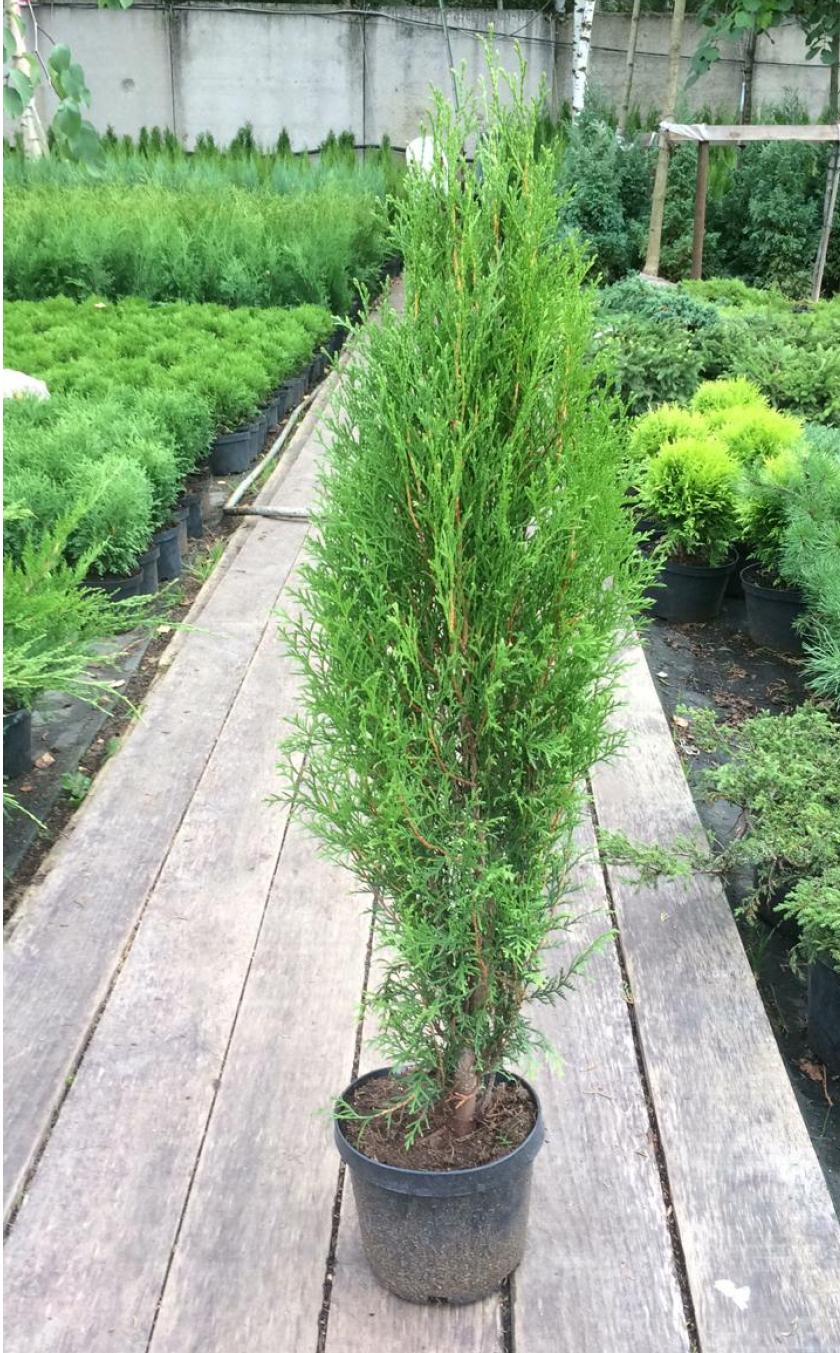 Взрослое растение при должном уходе достигает в высоту 12 м, а в ширину – чуть больше 1 м. Быстрорастущий сорт, за год побеги в среднем удлиняются на 0,3 м. Дерево формирует крону в виде колонны, благодаря густым, прижатым друг к другу ветвям. Побеги покрыты мягкой, ароматной хвоей. В зависимости от возраста она может быть светло или темно-зеленой. Крупномер западный Fastigiata хорошо себя чувствует на плодородных, солнечных участках. Почва должна быть умеренно влажной, дренированной. Ранней весной саженцы нуждаются в укрытии от жгучих лучей.