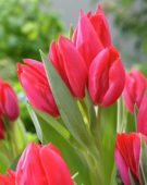 Тюльпан Trinity - многоцветковый сорт. Цветки нежно-красные, большие, однотонные. Листья длинные, зеленые с салатовым оттенком. Высота стебля взрослого растени я достигает 45 см.